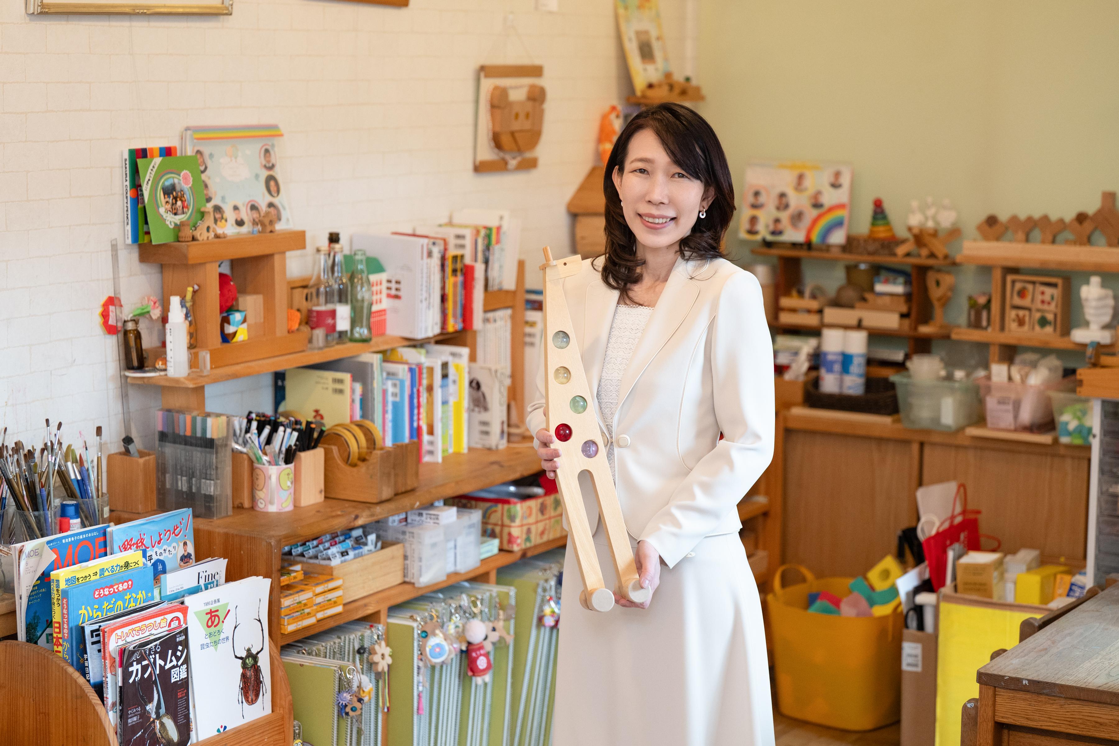 豊富な教育経験を生かし、自分の理想とする本物の教育が出来る教室を作りたいと考える。娘の友達のお母さま方から熱心に「子どもの教育に力を貸してほしい、教室を開校してほしい」とのお声をいただき、「子どもへのまなざしにじのもりを開校。