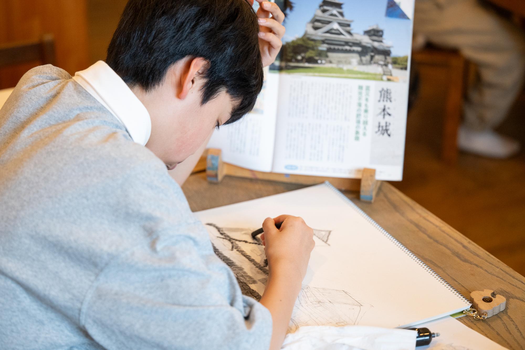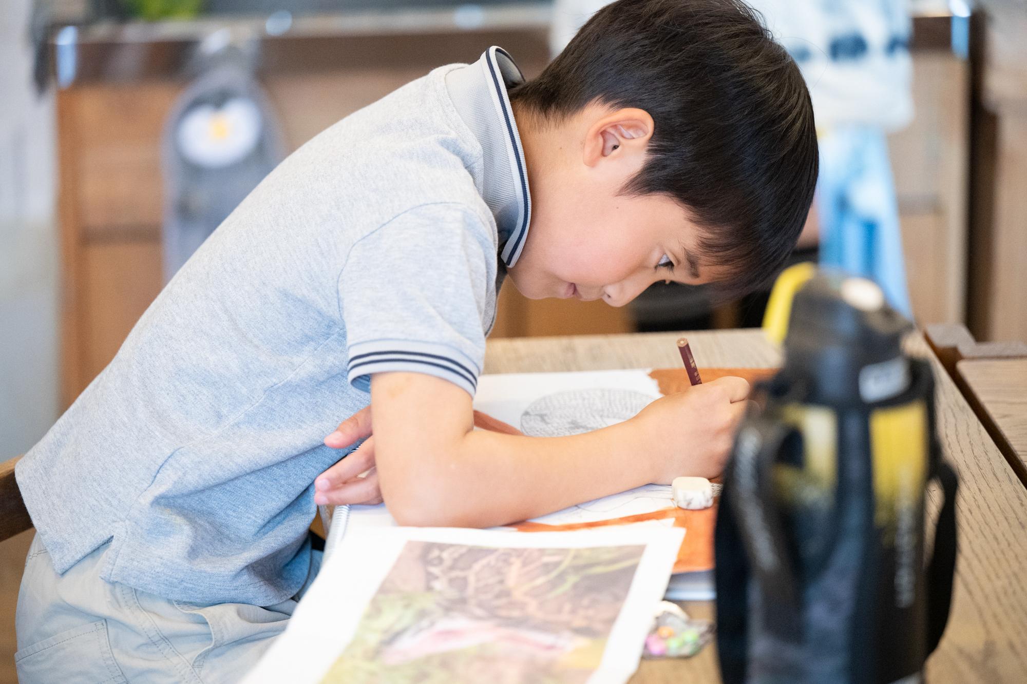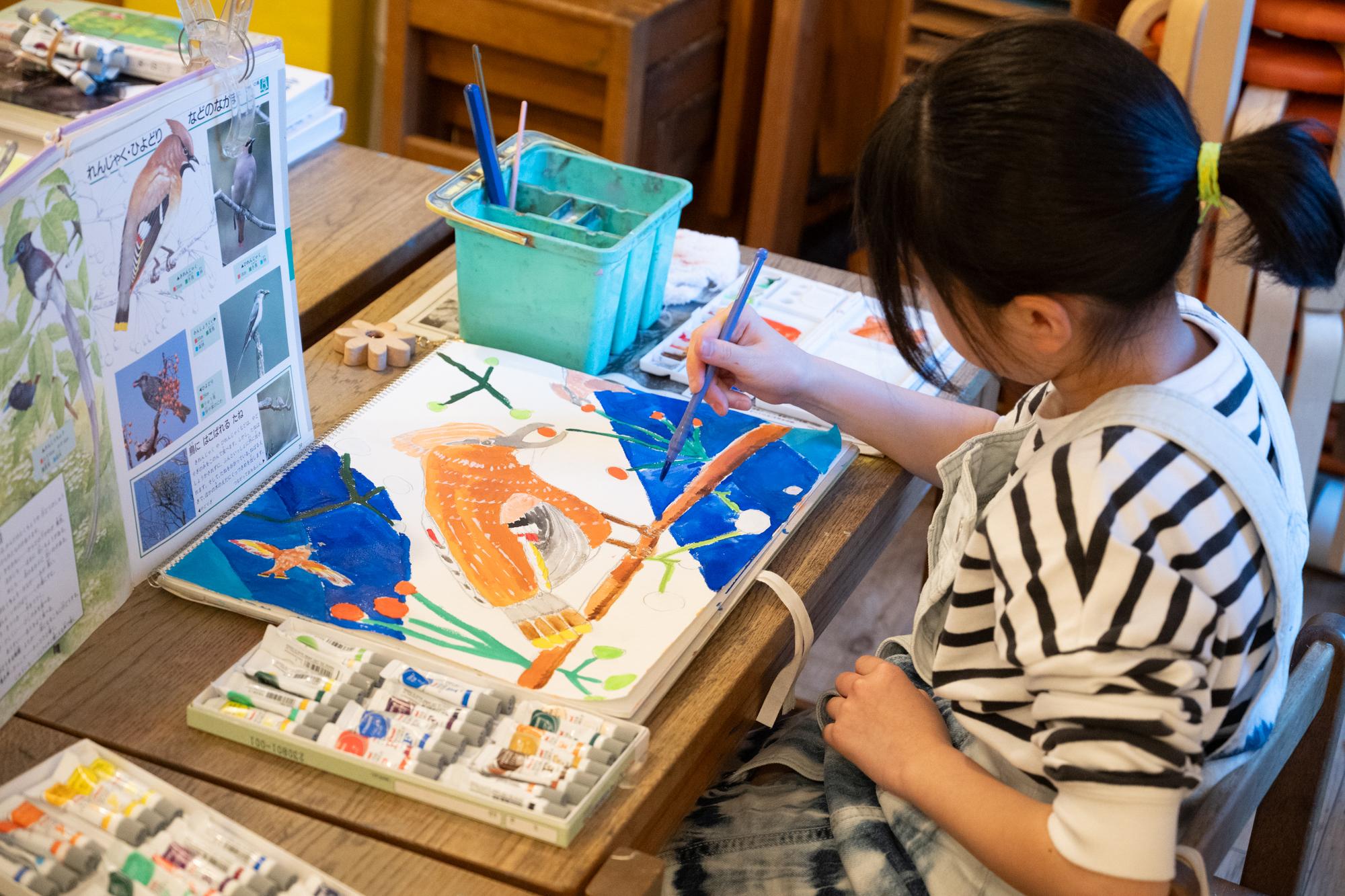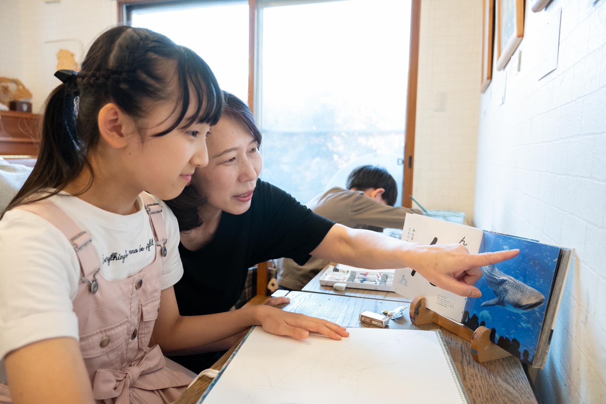子どもたちが描き方に困った時、求めてきたときだけ、先生は助言します。